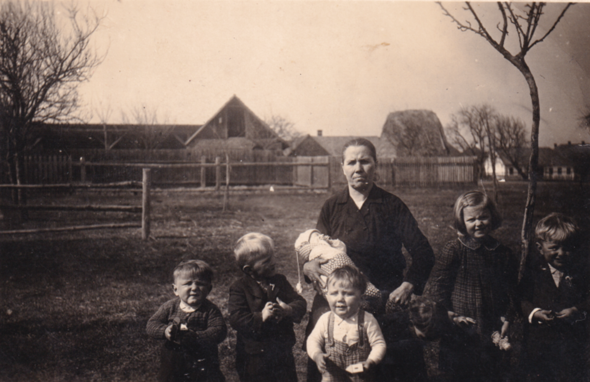 Angela Kirisits mit ihren Enkeln im Garten, heute Hauptstraße 84, vermutlich in den 1940ern.